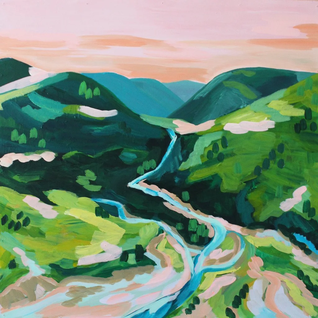 View from Franey (2020). Acrylic on cradled board, 18x18".