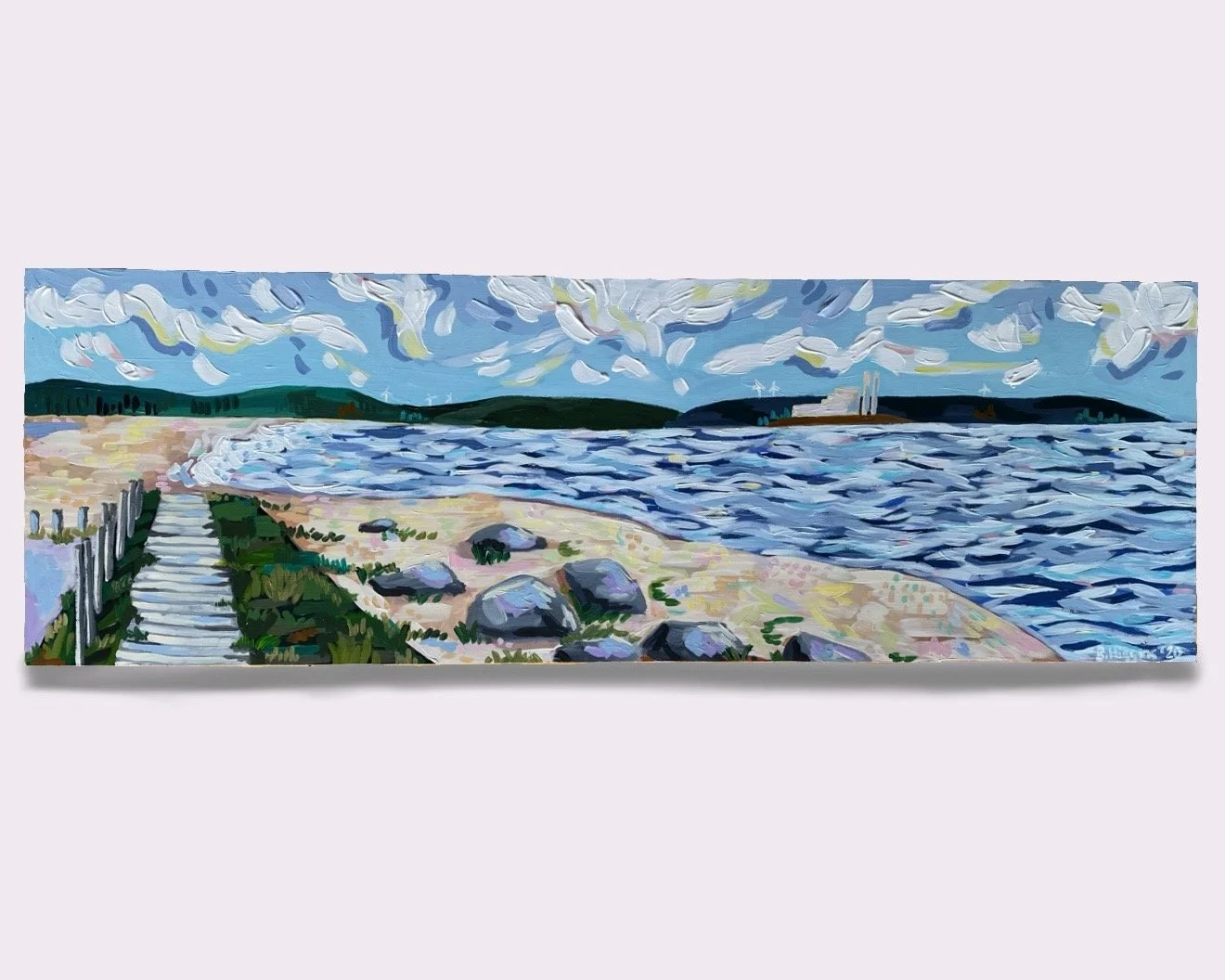 Dominion Beach (2020). Acrylic on board, 12x36".