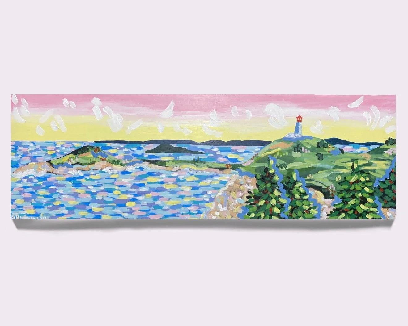 Louisbourg Lighthouse (2020). Acrylic on board, 12x36".